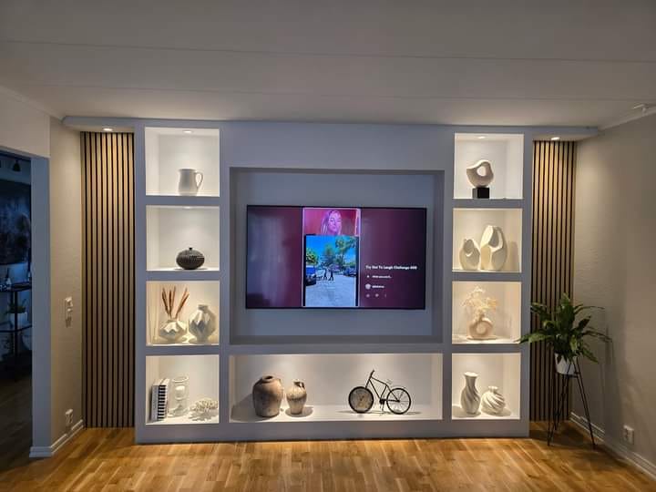 Create a stunning focal point in your living room with our bespoke media wall solutions! At Dida Wall Frames, we design and install custom media walls that combine sleek lines, innovative technology, and beautiful finishes. Our Media Wall Solutions: - Custom-designed media walls with integrated fireplaces and LED lighting - High-quality finishes, including expert painting and bespoke detailing - Seamless integration of TVs, sound systems, and other media devices - Unique and stylish designs to suit your home's aesthetic Features: - Electric fireplaces with realistic flame effects and adjustable heat settings - LED lighting solutions to create ambiance and highlight your media wall - Custom painting and finishing to match your desired color scheme and style - Expert installation to ensure a flawless finish Benefits: - Creates a stunning focal point in your living room - Enhances the viewing experience with integrated media solutions - Adds warmth and ambiance with electric fireplaces and LED lighting - Increases the value of your home with bespoke design and installation